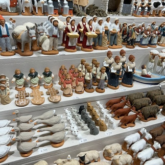 Ein weiterer wunderschöner Teil der Weihnachtszeit in der Provence ist die Tradition der Santons . Santons , vom provenzalischen Wort „santoun “ für „kleiner Heiliger“, sind handgefertigte Tonfiguren, die nicht nur die Weihnachtsgeschichte, sondern auch Dorfbewohner aus dem traditionellen provenzalischen Alltag darstellen. Man findet Bäcker, Fischer, Hirten, den Bürgermeister, den Priester, die Wäscherin, spielende Kinder und viele andere liebenswerte Gestalten.